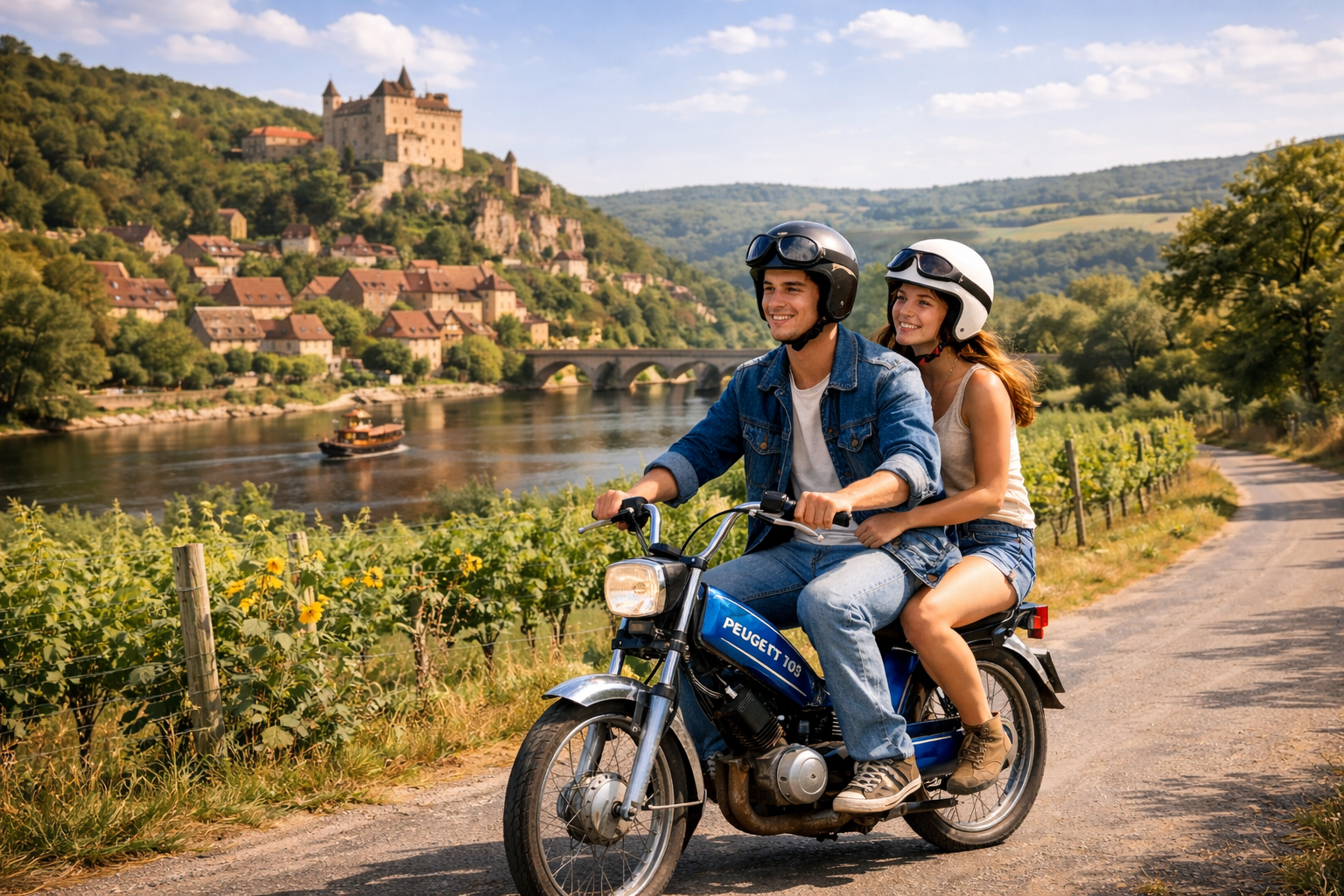 Au guidon de votre mobylette, explorez la Dordogne autrement, loin des itinéraires classiques. Traversez des villages de caractère, longez des routes paisibles et découvrez des paysages qui évoluent à chaque virage.